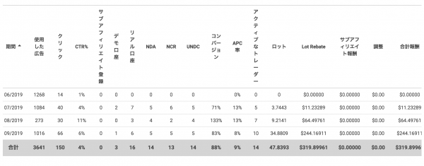 2019年9月のXMアフィリエイトの結果